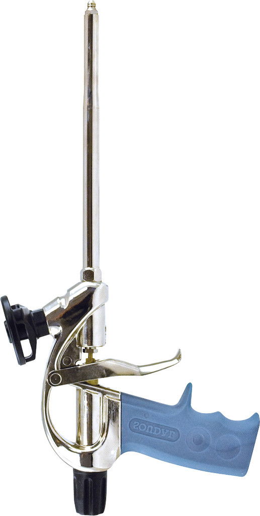 A purhab flakont szorosan rögzítse a pisztolyra. Állítsa be a szabályozócsavart és a ravaszt meghúzva adagolja a habot. Ha a szórópisztolyt átmenetileg nem használja, zárja el a szabályozócsavart és tisztítsa meg a pisztoly csúcsát a Soudal Gun Cleaner segítségével. Ha befejezte a pisztoly használatát, alaposan tisztítsa meg a pisztolyt Soudal Gun Cleaner-el.